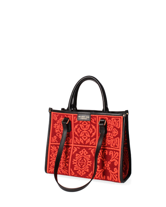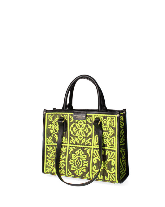 Black and Yellow Geometric-Pattern Tote with Double Handle