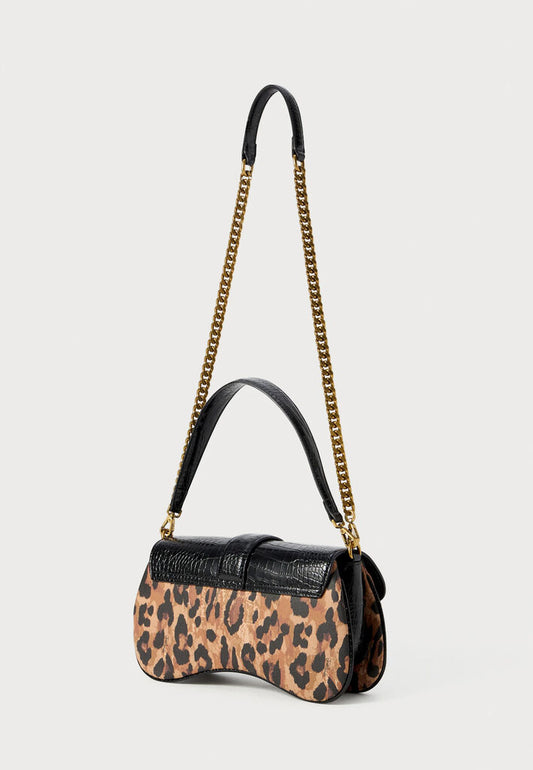 Black Croc-Embossed Shoulder Bag with Chain Detail