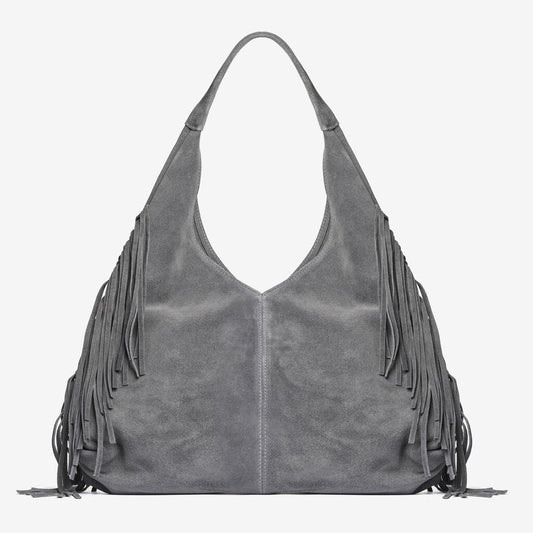 Gray Suede Hobo Bag with Fringe Detail210315-40469534Regular price $305.00 USDRegular priceUnit price per-