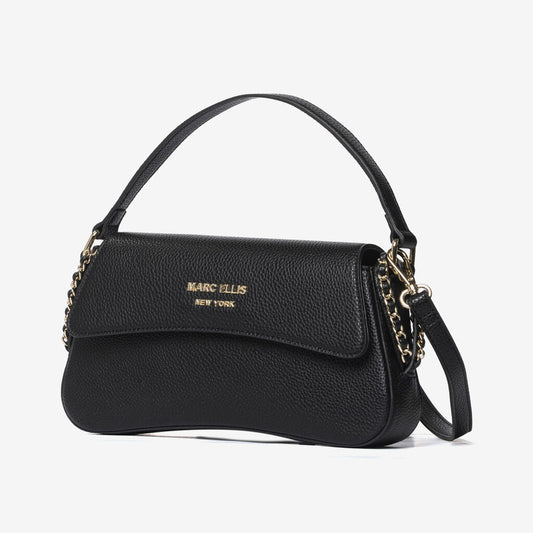 Burgundy Pebbled Leather Shoulder Bag with Chain Detail