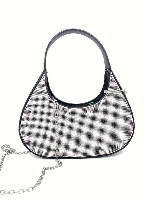 Black Rhinestone Shoulder Bag with Round Handle