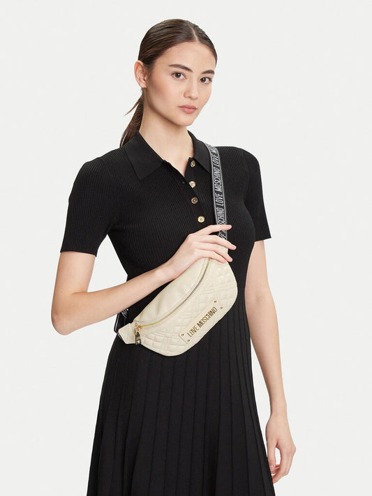 Cream Quilted Belt Bag with Gold Accents