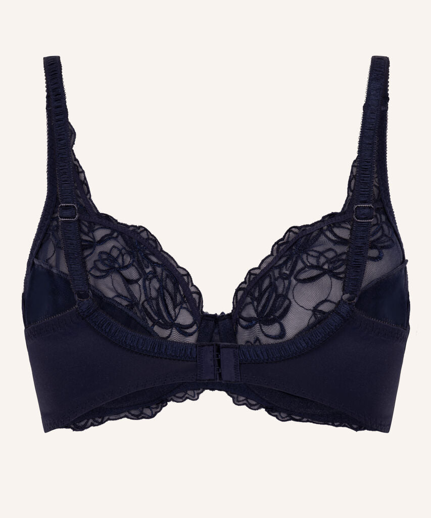 This non-padded underwired bra is made from non-see-through fabric with semi-transparent lace at the top. The cups are decorated with a floral pattern. Combine with the matching Diva knickers for a co