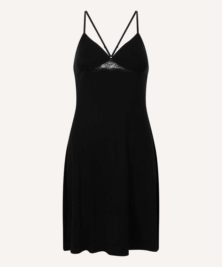 Feel sexy in this super soft slip dress! It has lace decorations below the breasts and on the back. Pair with a kimono to have the most comfortable set!