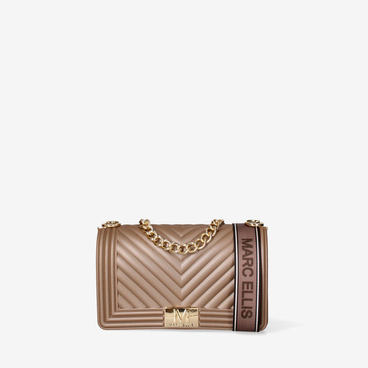 Dusty Rose Pebbled Leather Shoulder Bag with Gold Chain