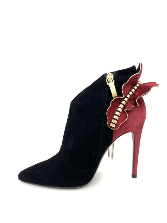 Black Stretch Stiletto Ankle Boots with Logo Detail