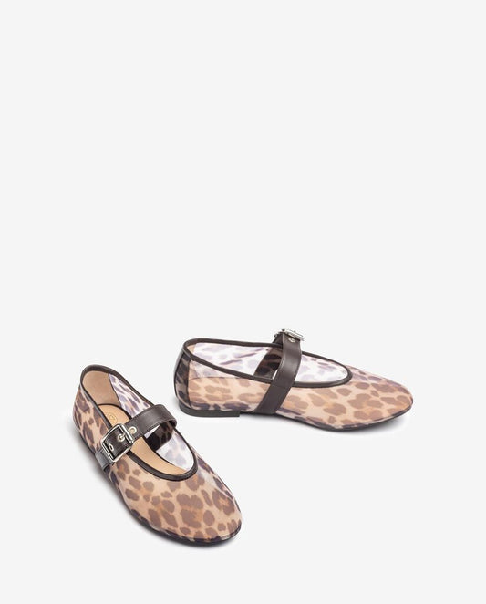Leopard Print Mesh Ballet Flats with Buckle Strap