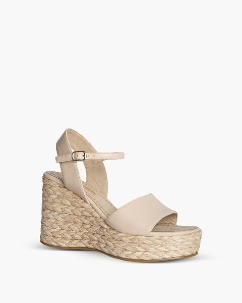 Beige Textured Wedge Sandal with Ankle Strap