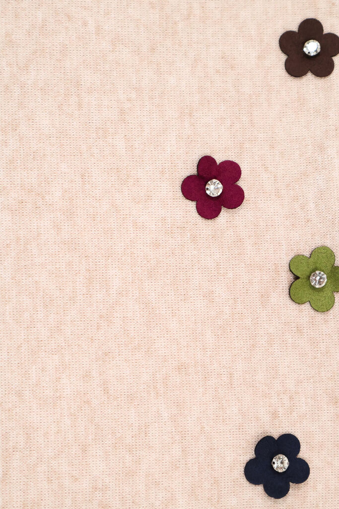 Embrace effortless elegance with this textured beige top. Featuring delicate floral embroidery, it adds a touch of charm to any look. Perfect for casual days out or cozy evenings in.