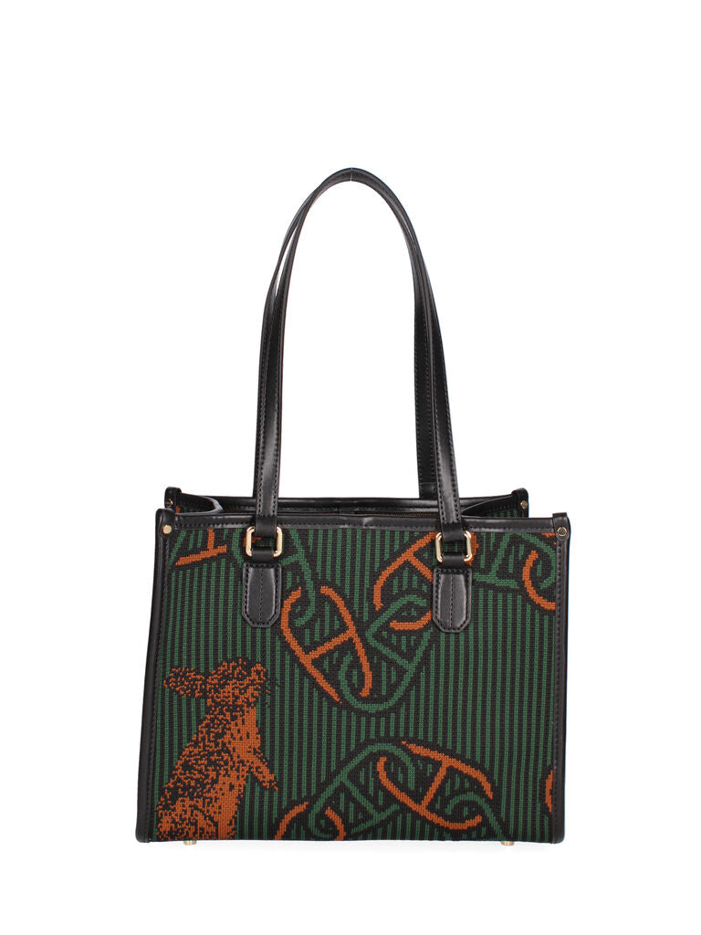 Carry elegance and functionality with this spacious tote bag, crafted with a unique tapestry design featuring an eye-catching animal motif.