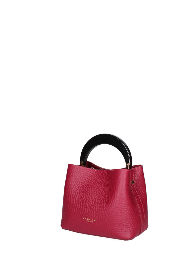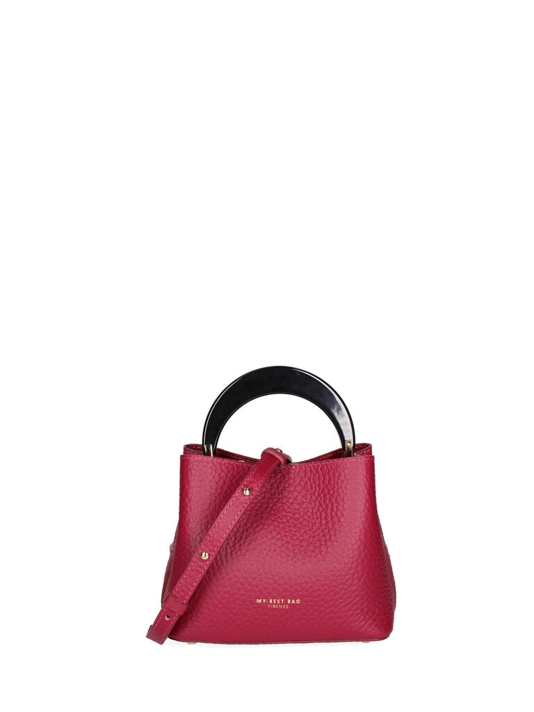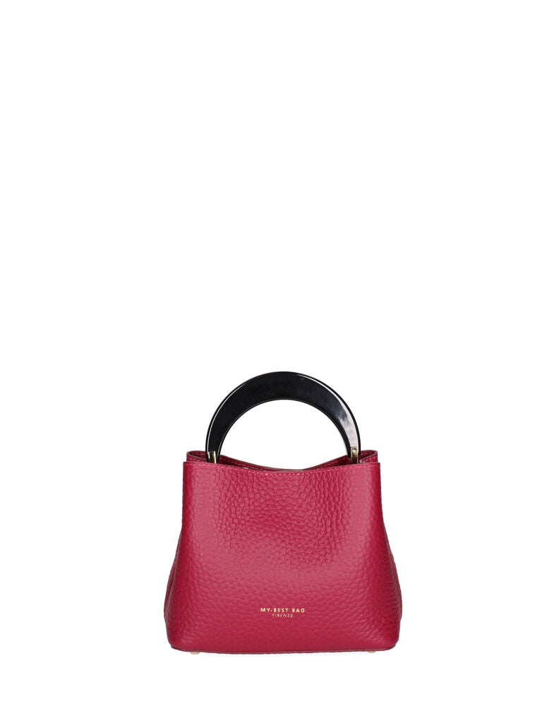 Add a pop of color with this berry handbag, featuring a striking round handle. Its structured form is perfect for both casual outings and chic events.