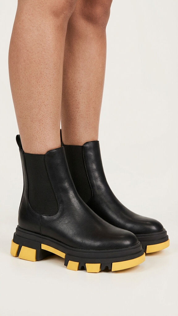 Make a bold statement with every step you take in these striking Chelsea boots. Featuring a unique yellow sole, this boot combines classic style with contemporary flair, perfect for those who appreciate standout footwear.