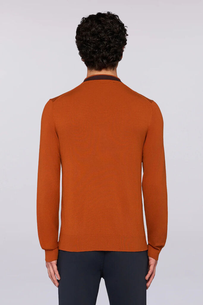 Rust Knit Long-Sleeve Polo with Contrast Collar