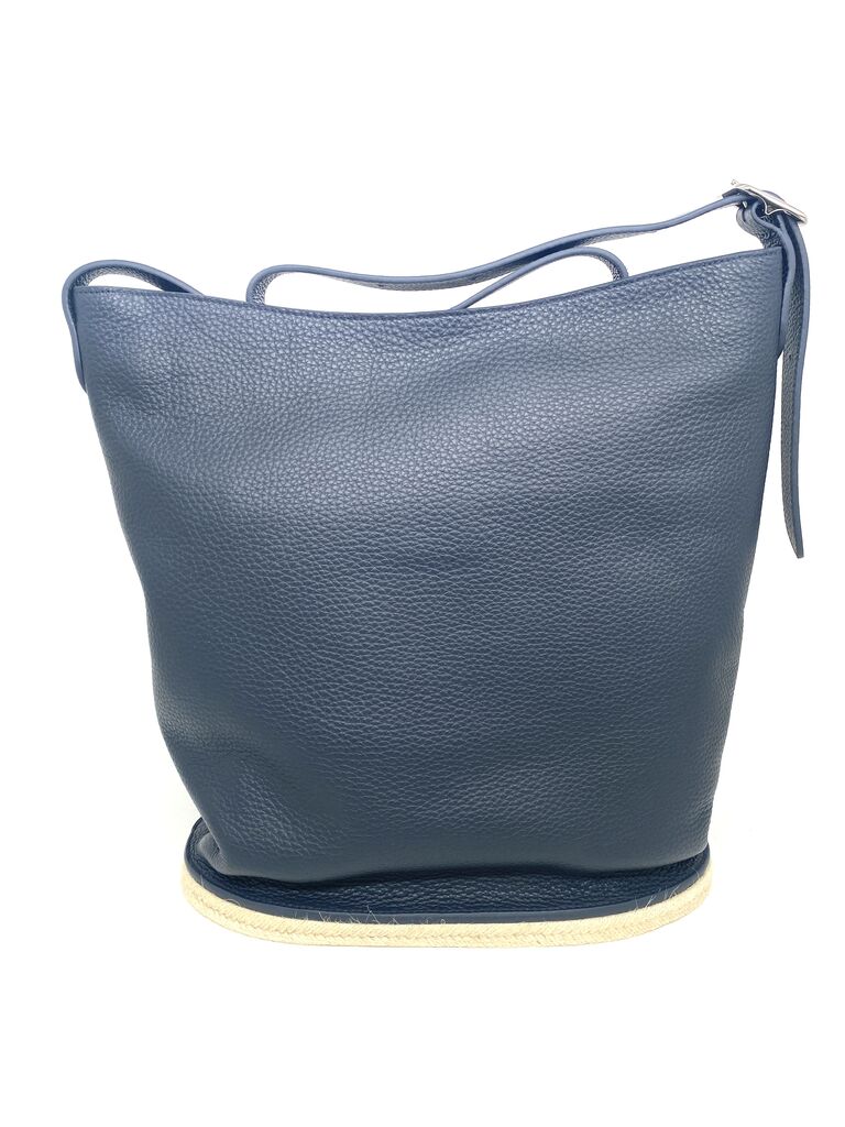 Embrace effortless style with this navy bucket bag, crafted in textured leather. The minimalist design and convenient sling strap make it perfect for everyday use.