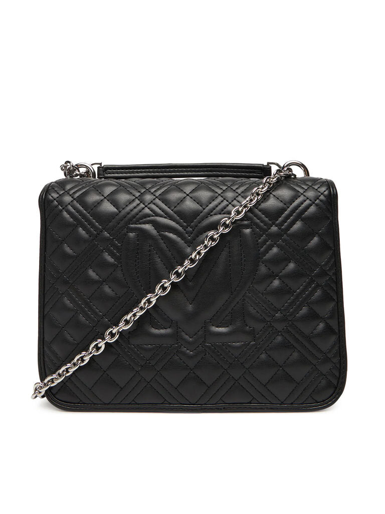Black Quilted Shoulder Bag with Chain Strap