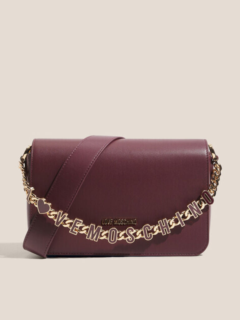 Elevate your ensemble with this plum crossbody, featuring a chic gold chain accent. Its structured design offers both style and functionality, perfect for your essentials. Embrace modern elegance effortlessly.