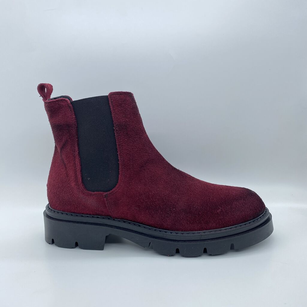 Maroon Suede Chelsea Boot with Chunky Sole
