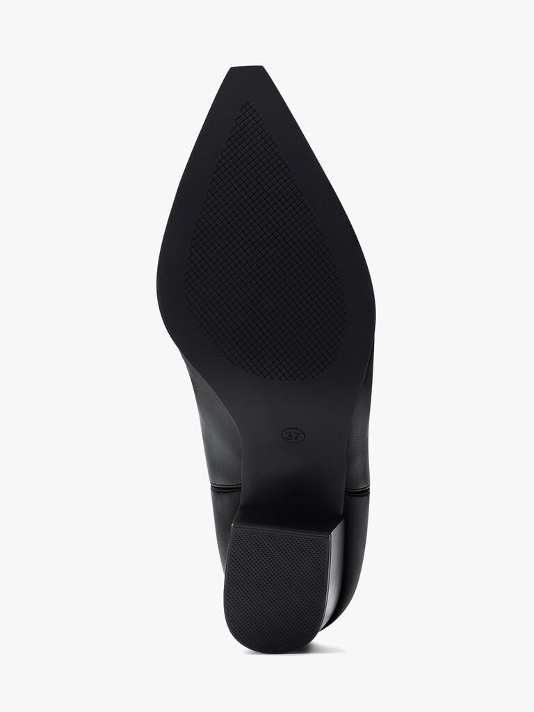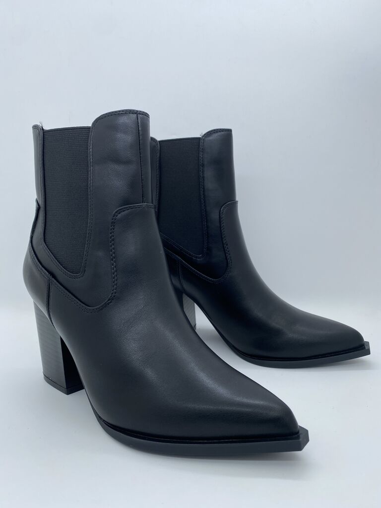 Perfect for elevating your everyday look, these sleek ankle boots offer a rich, polished finish. The block heel provides stability, while the elastic side panels ensure comfort with every step.
