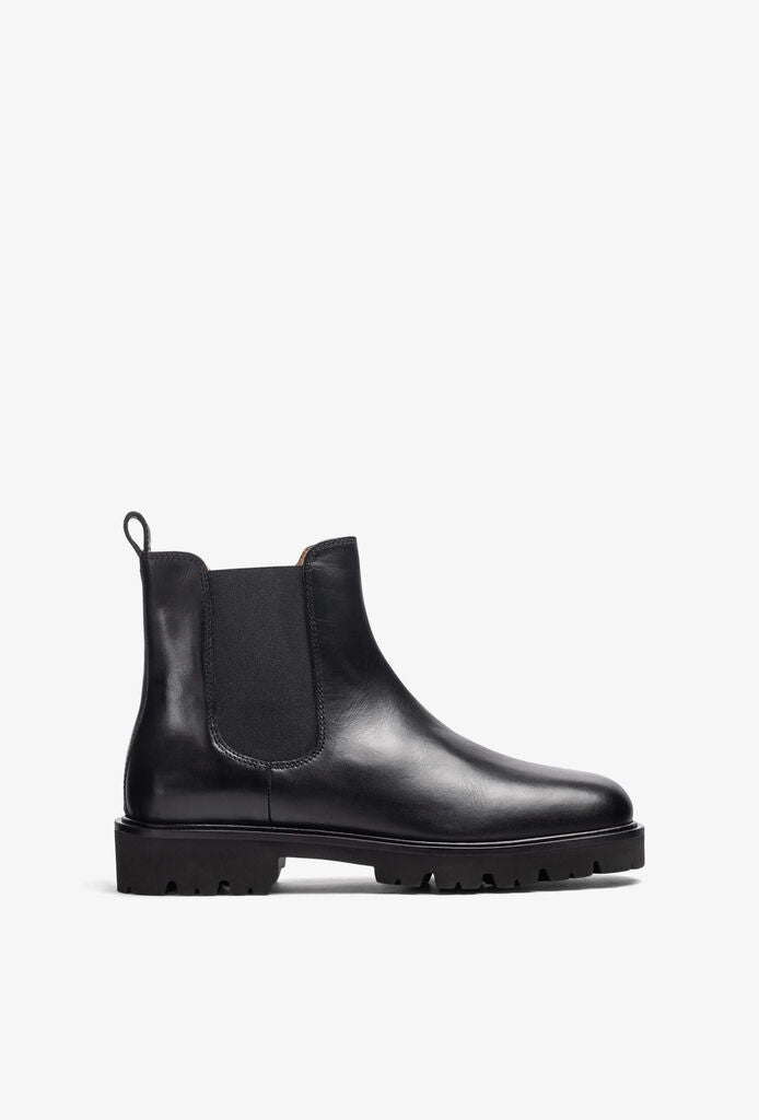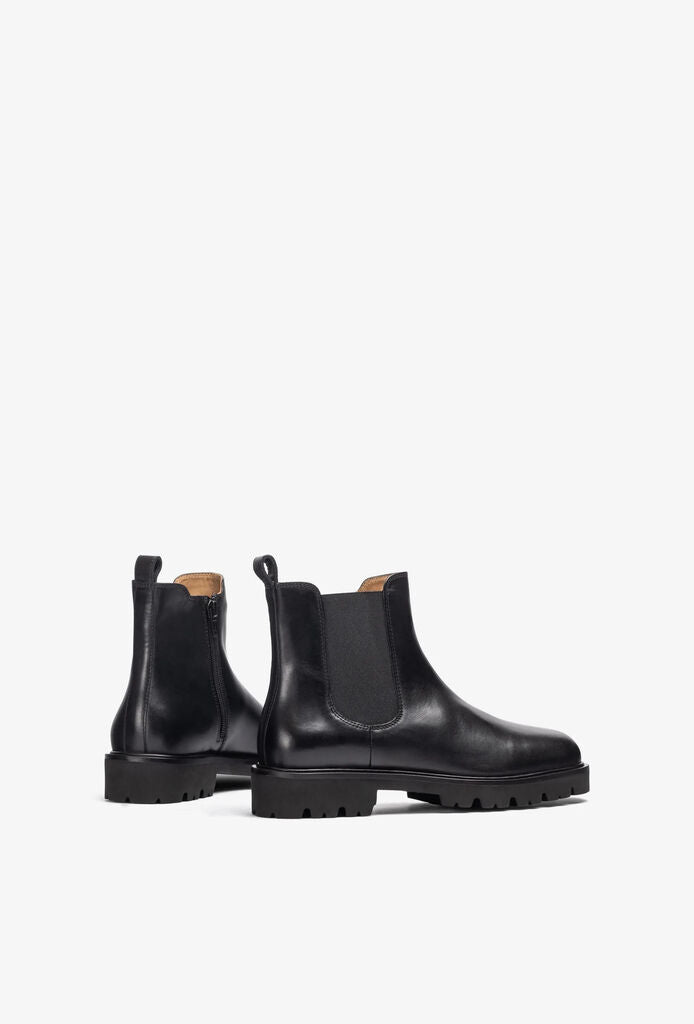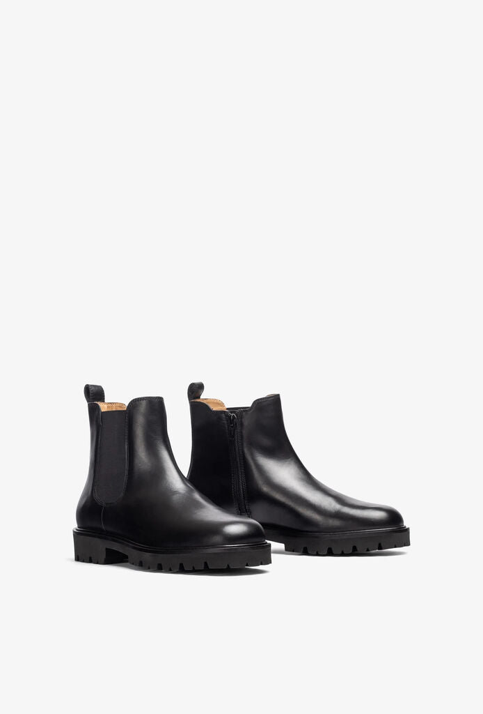 Black Leather Chelsea Boot with Lug Sole