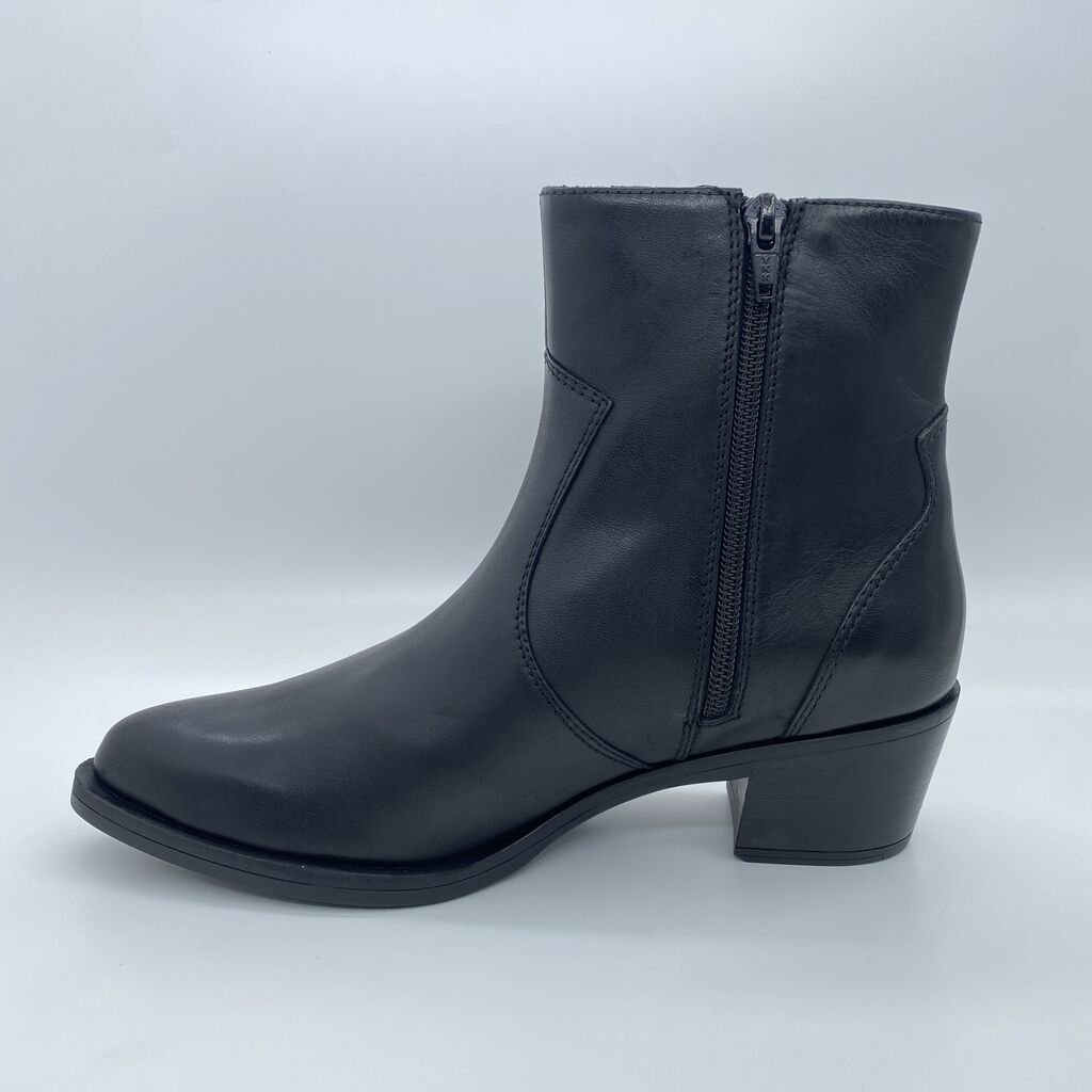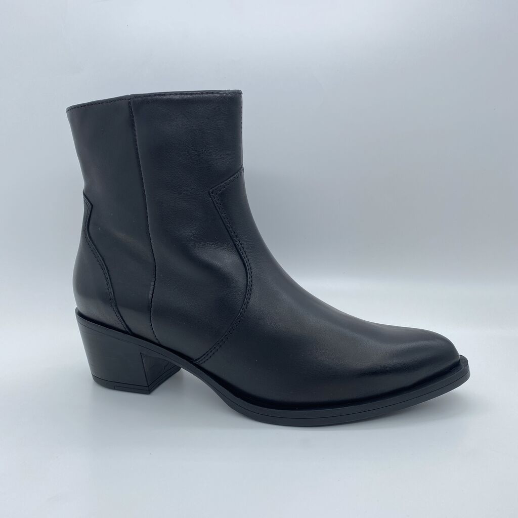 Black Leather Ankle Boots with Mid Heel