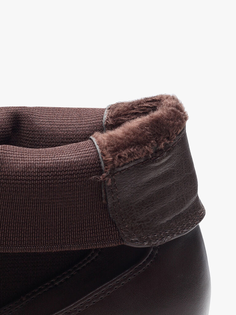 Elevate your style with these sleek brown ankle boots, featuring a sturdy block heel. Perfect for transitioning from work to evening outings.