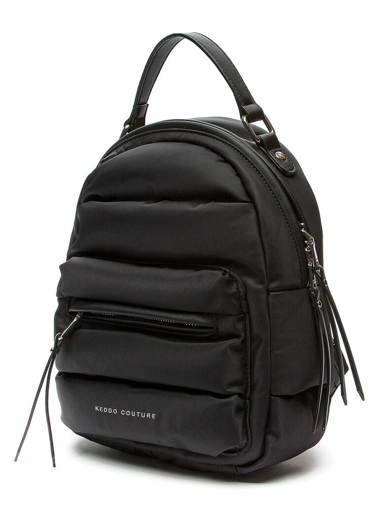 Experience effortless style with this sleek black quilted backpack. It offers both function and charm, featuring a handy front pocket for easy access. Perfect for city explorations.
