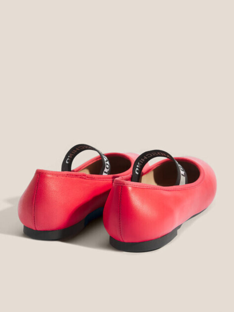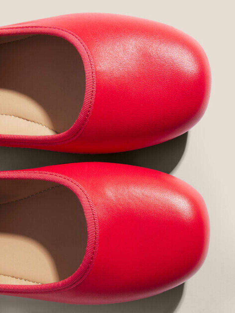 Fuchsia Red Leather Ballet Flats with Elastic Strap