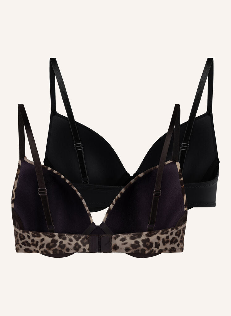 You cannot go wrong with these basic bras! Lucky for you they are now available in a 2-pack to make sure you never run out! They are finished with a cute bow in between the cups, and can be pared with