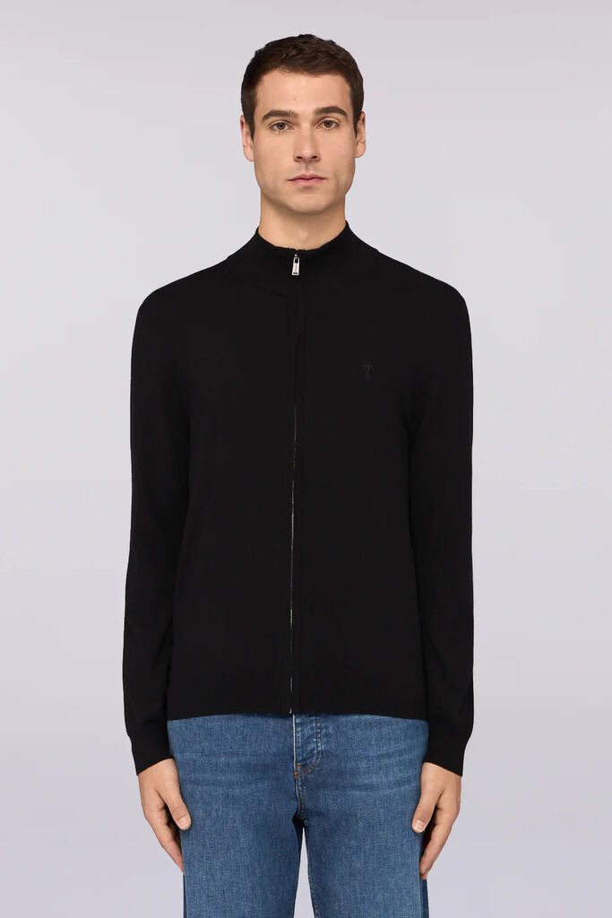Experience the easy elegance of a sleek black cardigan. The zip-up design offers a modern twist to a classic piece, perfect for layering effortlessly for any occasion. Feel the lightweight comfort and sophistication with every wear.