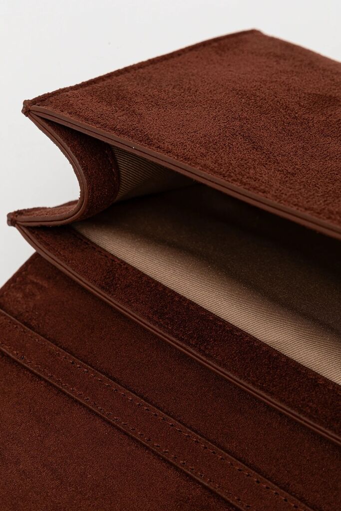 Embrace timeless elegance with this chic brown crossbody bag. Its smooth suede finish and charming heart clasp add a touch of sophistication to your ensemble. Perfect for an evening out or a special event, this bag complements any outfit effortles
