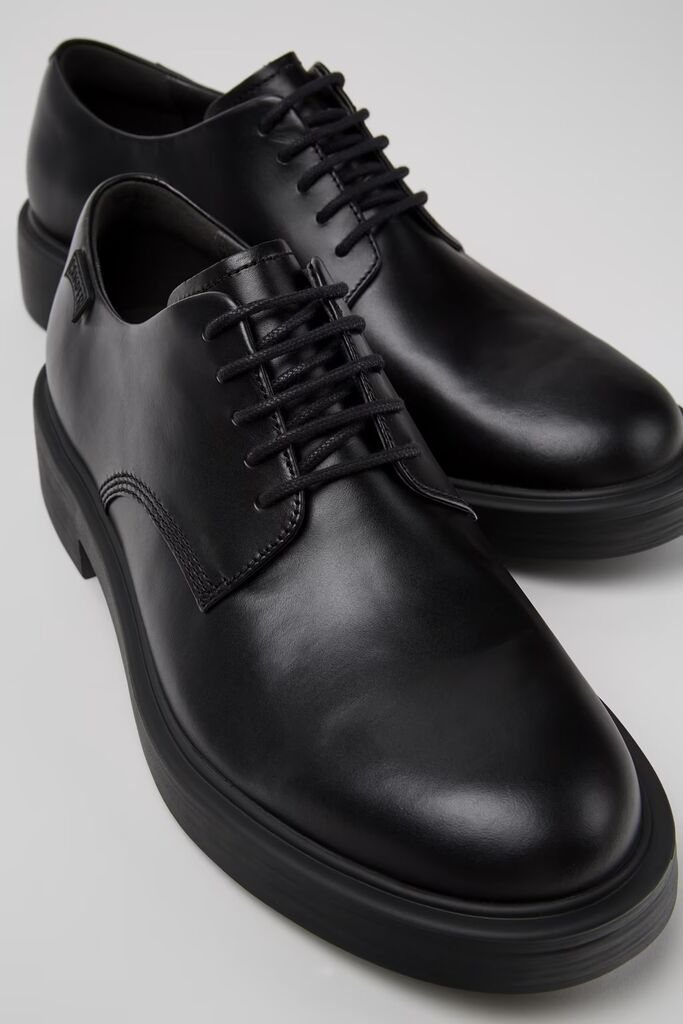 Elevate your style with these black leather Derby shoes featuring a robust chunky sole. Designed for comfort and versatility, perfect for both office and evening wear.