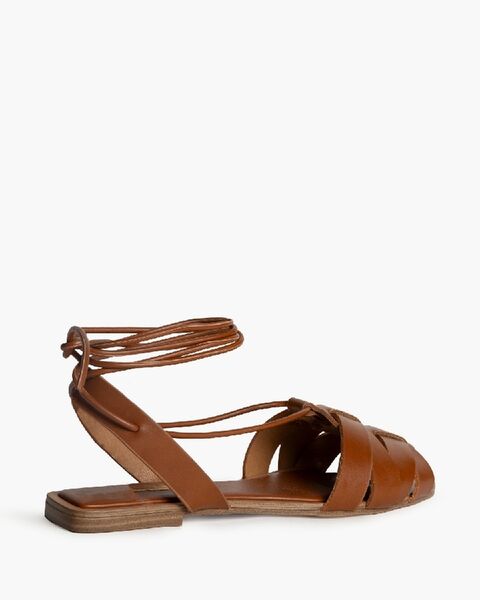 Embrace the warmth of sunny days with these elegant brown leather sandals. The soft straps and ankle tie create a secure and comfortable fit, perfect for a casual walk or a relaxed evening out.