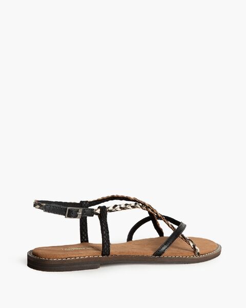Black Braided Flat Sandals with Adjustable Strap