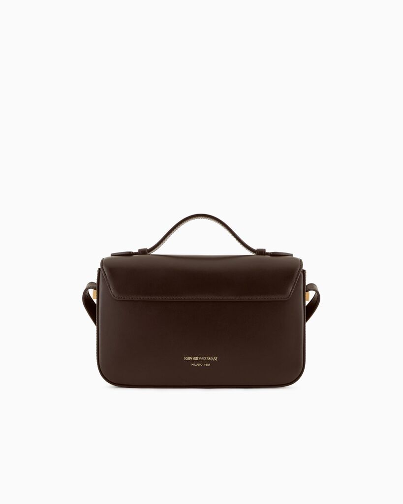 Experience everyday elegance with this brown leather satchel, designed with a structured silhouette and adorned with striking gold accents.