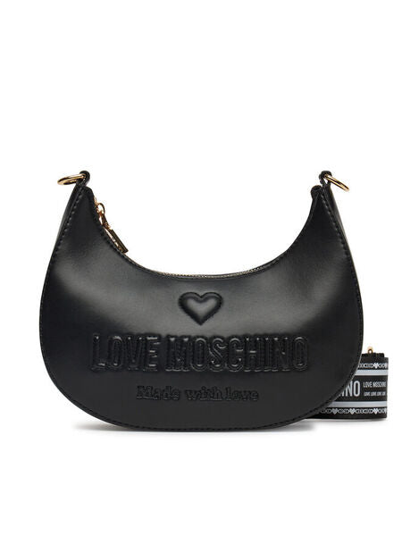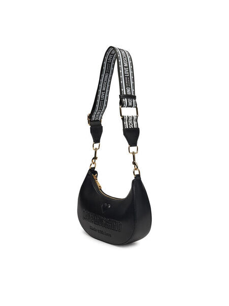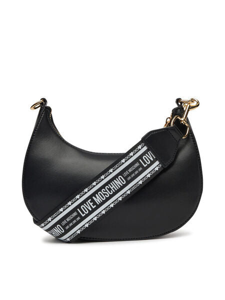 Elevate your style with this black crescent bag, featuring a bold logo strap. Its sleek design complements any ensemble, bringing a modern touch to your look.