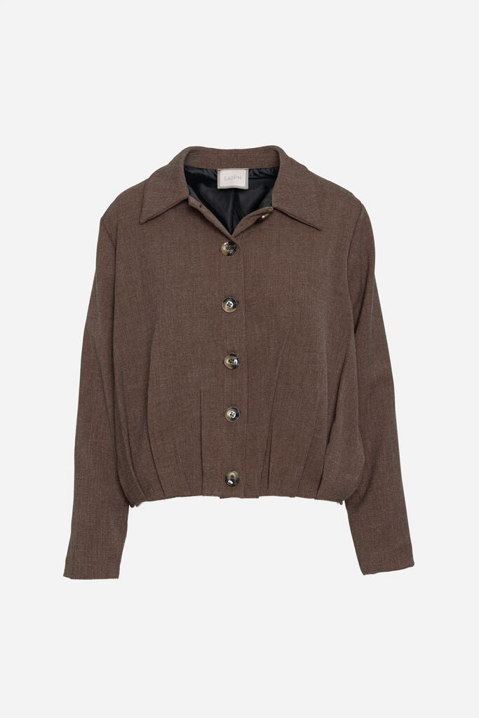 Embrace chic elegance with this refined brown jacket, featuring a structured fit and a classic button closure. Perfect for layering, its timeless design adds a touch of sophistication to any outfit. Ideal for both professional and casual settings.