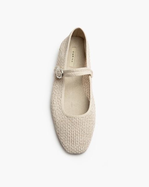 Beige Textured Mary Jane Ballet Flats with Buckle