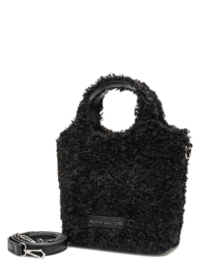 Black Faux Fur Mini Tote Bag with Detachable Strap
