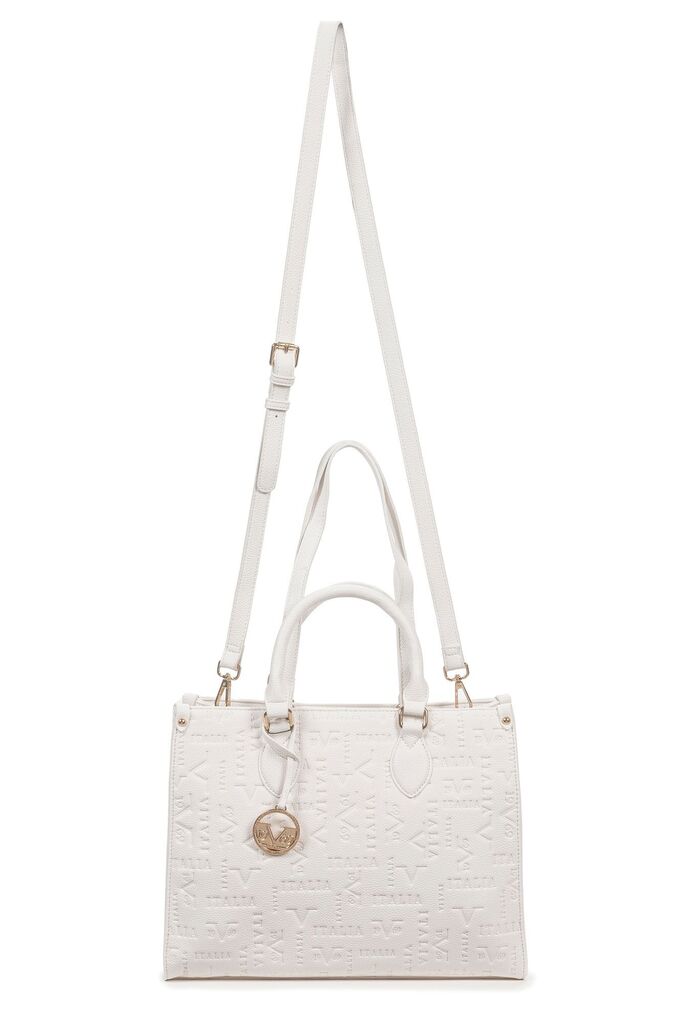 White Embossed Tote Bag with Adjustable Strap