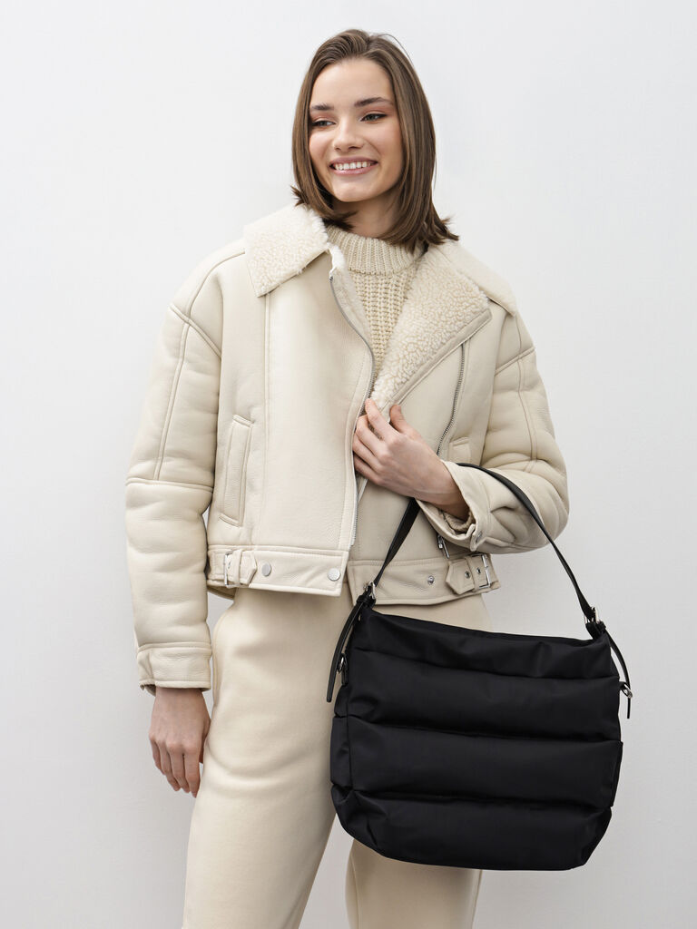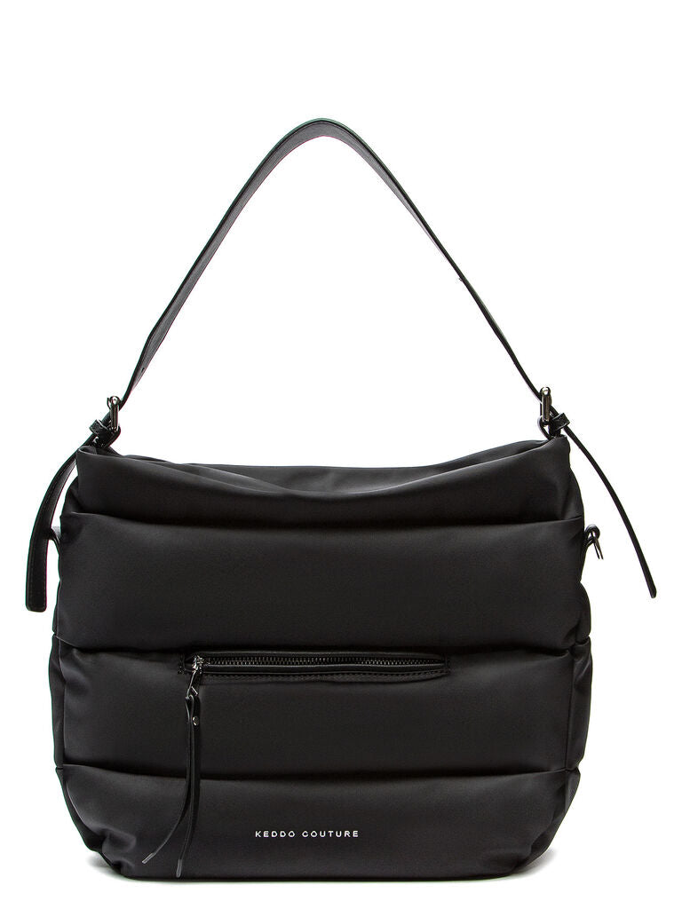 Elevate your everyday style with this sleek black quilted shoulder bag, designed for effortless elegance. The adjustable strap offers versatile wear, while the discreet front zipper adds a touch of practicality. Perfect for transitioning from work