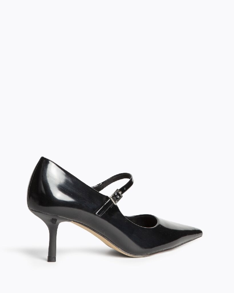 Slide into elegance with these glossy black Mary Jane pumps. The sleek design adds a touch of sophistication to any outfit, making them perfect for both the office and evening events. The kitten heel provides comfort without compromising style.