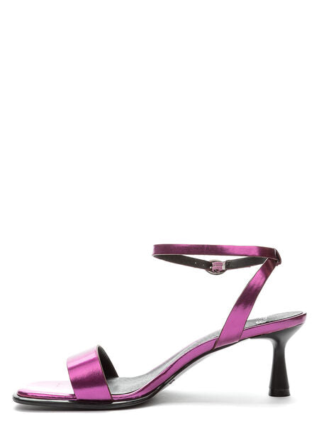 Purple Glossy Sandal with Ankle Strap and Kitten Heel