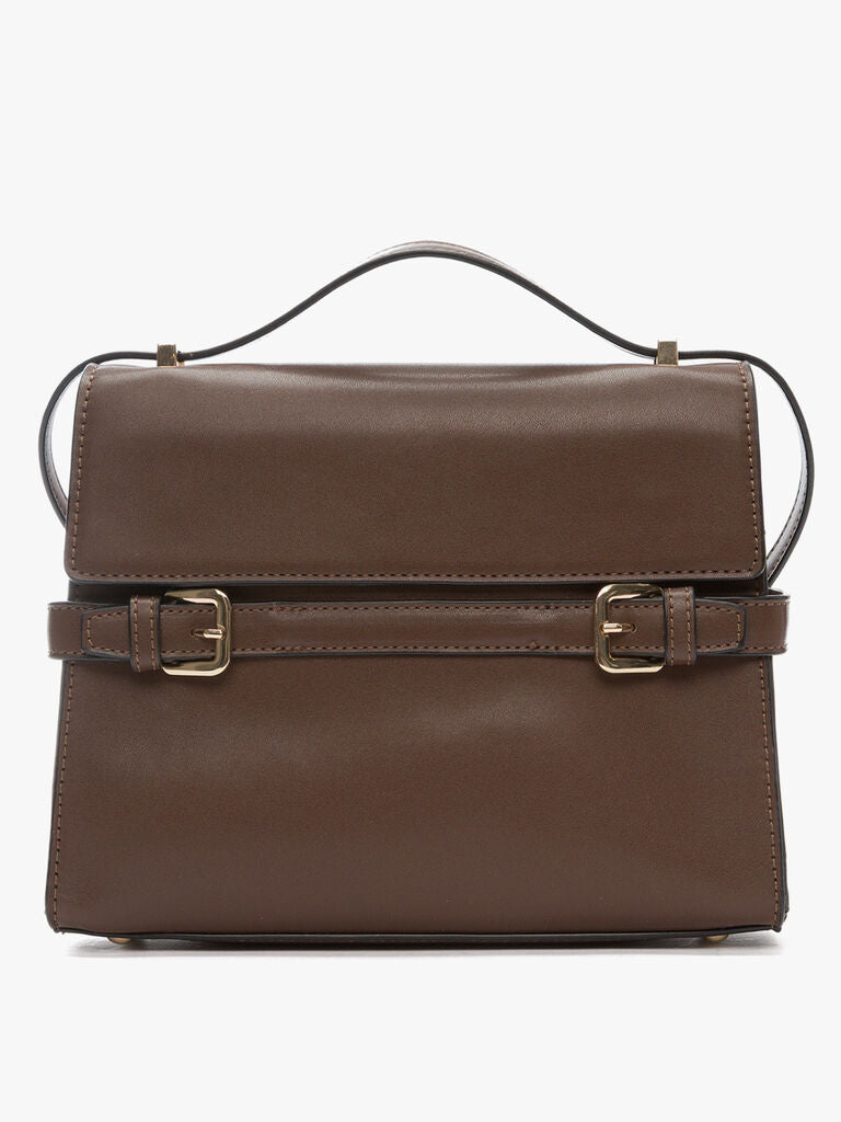 Effortlessly transition from work to weekend with this structured handbag. Its sleek design and buckle accents offer a timeless elegance, perfect for any occasion.