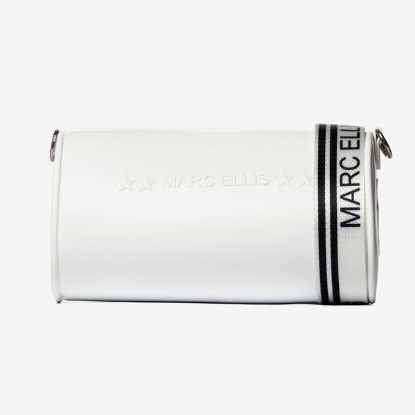 Carry your essentials in this sleek cylinder bag, featuring an embossed design and signature logo strap. Perfect for adding a touch of contemporary flair to your outfit.