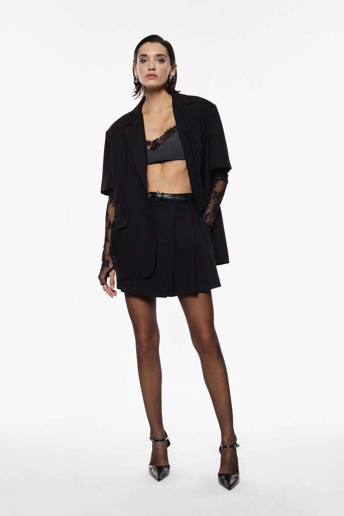 Elevate your ensemble with this deep burgundy pleated mini skort. Its structured, crisp design offers a stylish yet timeless appeal. Perfect for blending into a sophisticated workwear ensemble or enhancing your everyday look.