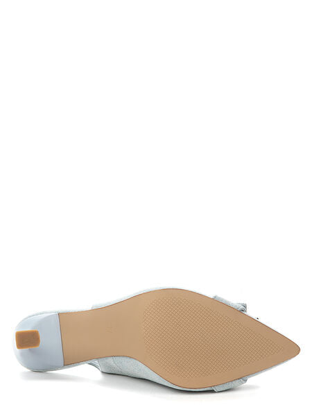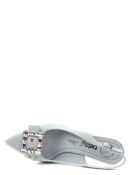 Light Blue Denim Slingback Heels with Rhinestone Buckle