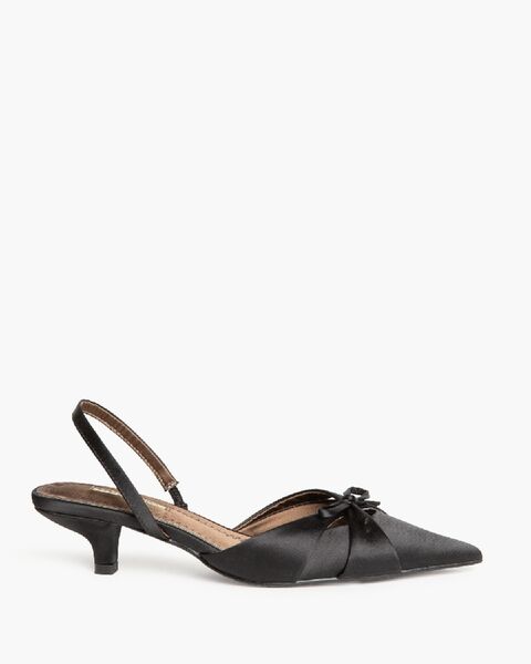 Black Satin Kitten Heel Slingback with Bow