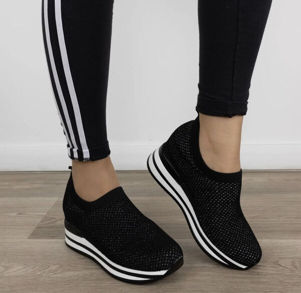 Experience all-day comfort with these sleek slip-on sneakers, featuring a breathable knit design and stylish stripe sole. Perfect for effortless style on the go.