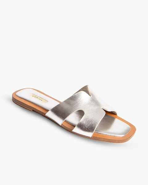 Silver Metallic Slide Sandal with Cut-Out Design