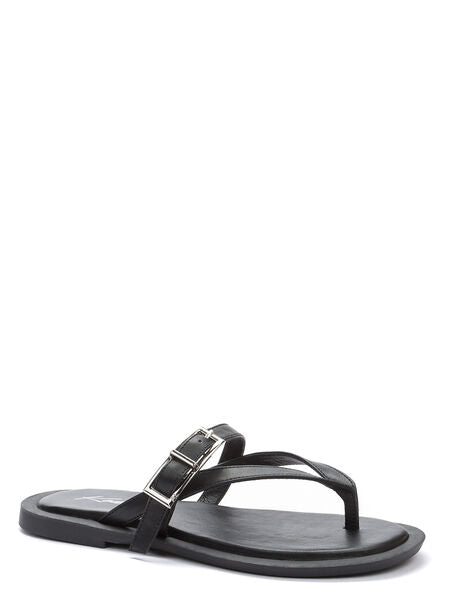 Black Buckled Sandal with Dual Straps